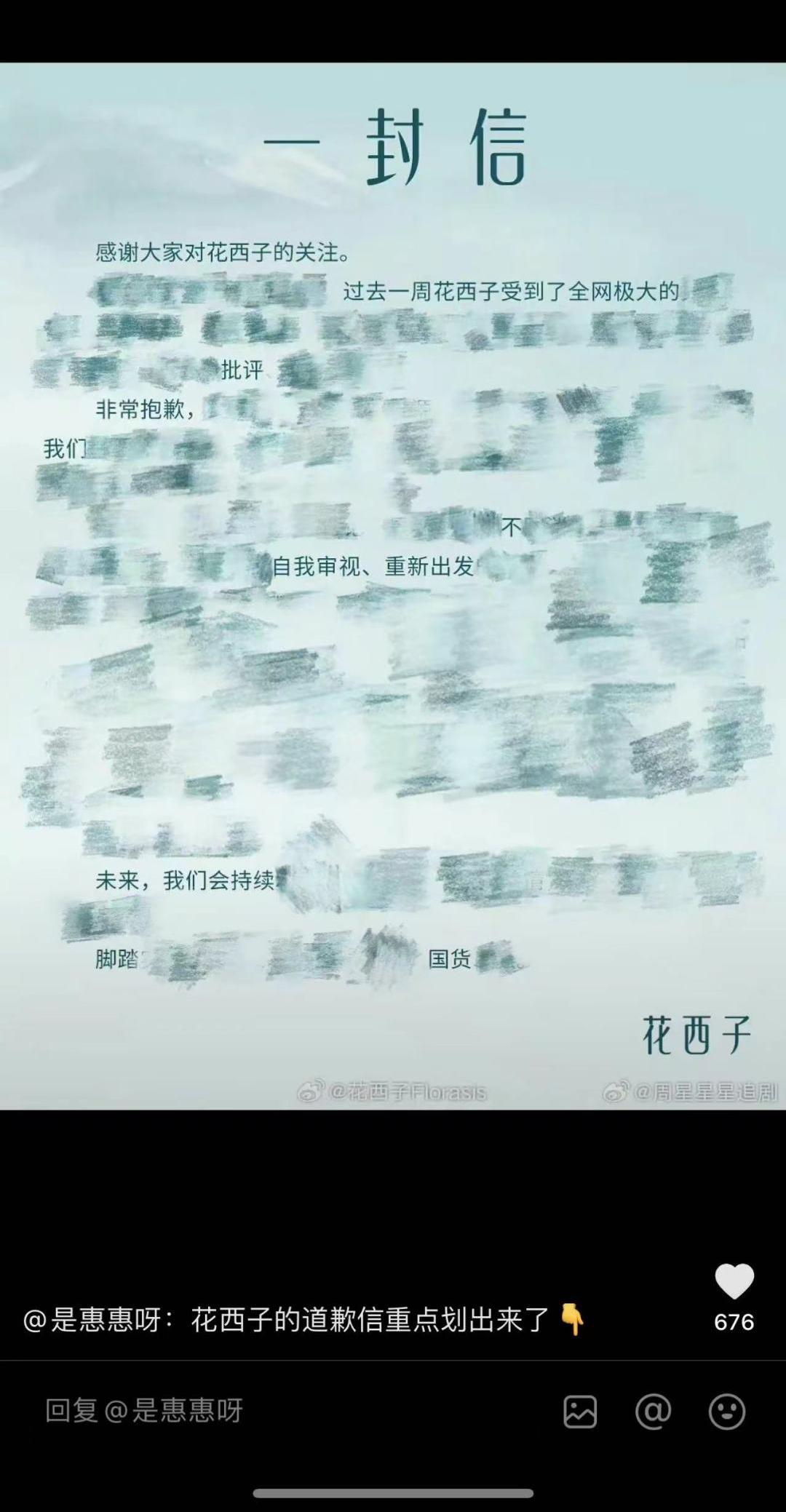 @王瑶兔:其他的不说,我自己很喜欢花西子的产品的,希望你们这次之后能真的重新出发,更上一层楼,做好国货吧