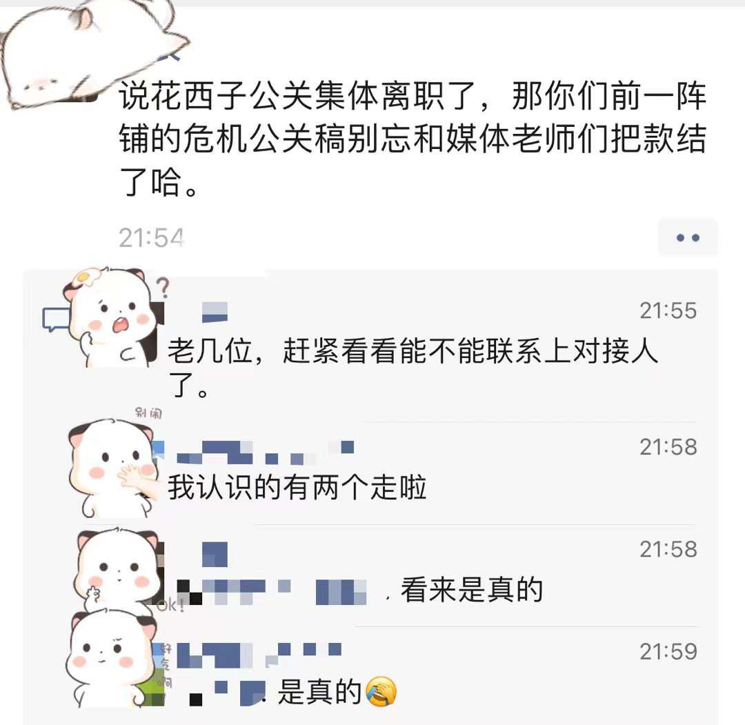 9月19日晚上,又有媒体晒出另一位疑似花西子公关的人士告知媒体已经离职。