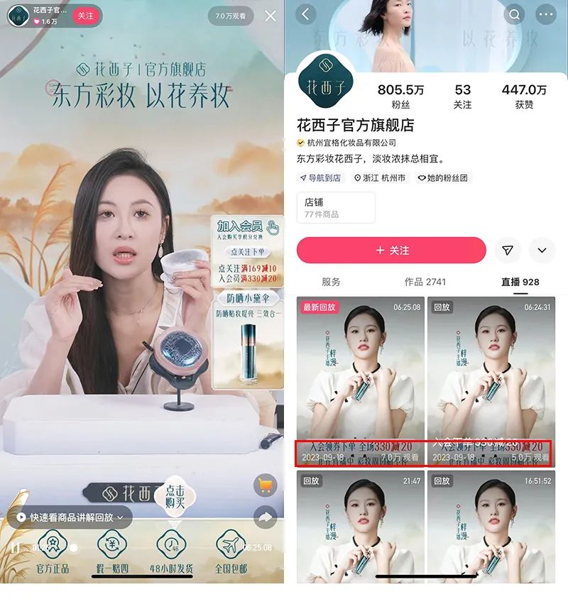 因为李佳琦事件,花西子在抖音的旗舰店,在9月11日早上直播了2个半小时后就结束了。