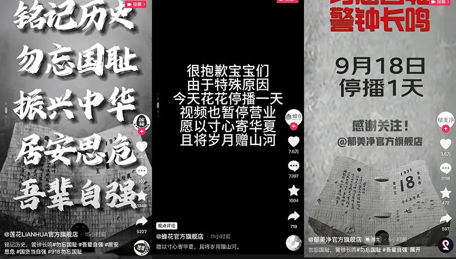 尤其是在9月18日当天,蜂花、莲花、郁美净等国货品牌都宣布停播一天后,花西子却在快手等平台继续直播带货。