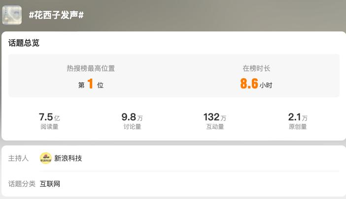在此话题之下的置顶贴,来自新浪科技的一条微博。
