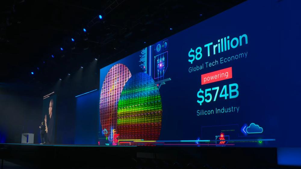 开场的演讲中,英尔特CEO帕特·基辛格介绍了半导体产业和科技经济的规模,并强调了算力在其中扮演的价值。