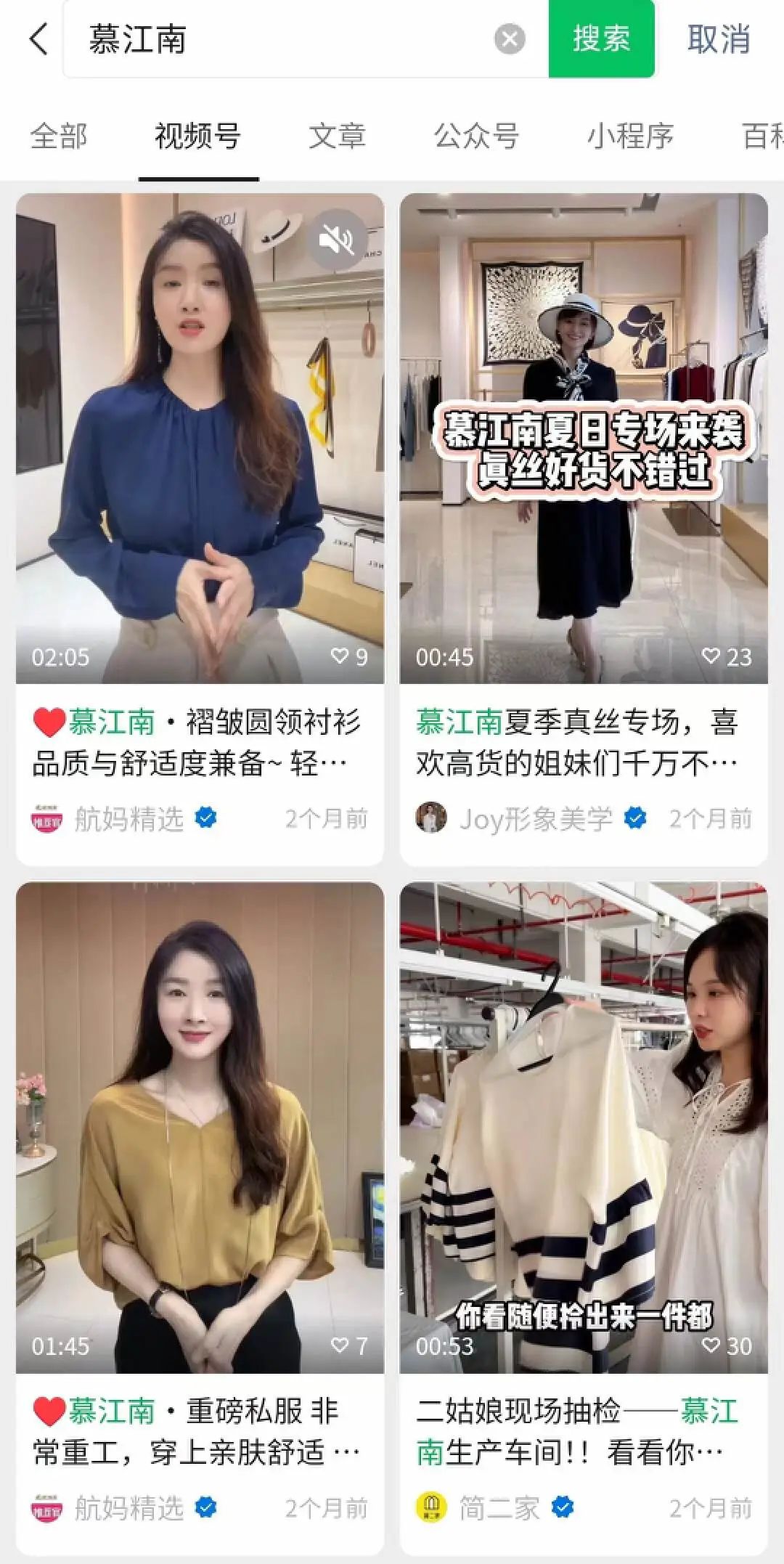 第一,用户高度契合。今年1月,微信官方曾公开披露,视频号直播带货用户群体中,女性用户占比高达80%,年龄分布较为成熟。虽然有观点认为视频号用户已经开始显现年轻化趋势,但在周大帅看来,50-55岁用户仍然是视频号最具消费力的用户群体,视频号核心用户以60后、70后为主,80后为辅,基本都在35岁以上。“慕江南以卖丝巾起家,和视频号用户非常契合。”