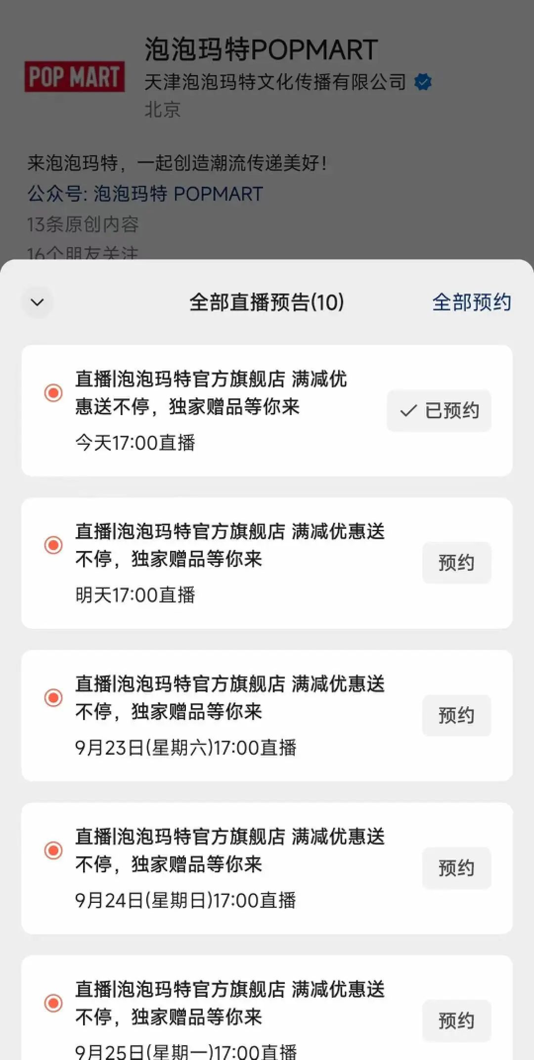 靠着私域积累,泡泡玛特在视频号的起步也格外顺利。除了正常直播外,泡泡玛特借助公众号推文等方式,调动公众号、小程序、社群的私域用户,为视频号直播间导流。与此同时,视频号主页也链接了公众号和小程序,方便用户的引流转化。
