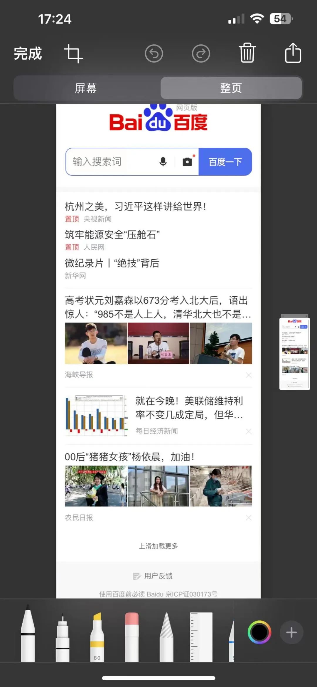 iOS 17 增加了长截图,其实这个功能在 iOS 16 就有,但保存格式却是PDF,现在则改为 JPG 格式。