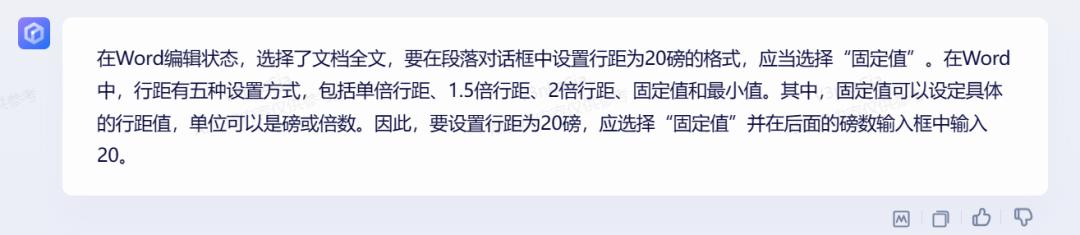 计算机办公软件应用常识题,三者都实现了正确作答。文心一言的回答对于 Word 行间距的知识点进行了补充。