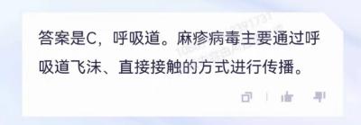 2、学龄儿童易感染麻疹病毒。该病毒传播的主要途径是(C)。