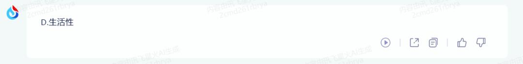 讯飞星火作答错误,并没有给出具体的解释。通义千问的回答还是存在着「复读机」的毛病。值得一提的是,笔者将本题归类到「逻辑判断」中,是由于学生真人在进行作答时,尽管可能没有对于相关知识点进行背诵,但仍然可以根据每个选项的字面阐发联想,进而推理得到正确答案。而大模型进行作答时,尽管也体现了一定的逻辑判断能力,其根基还是由海量数据投喂而成,由此丧失了一定的灵活性。