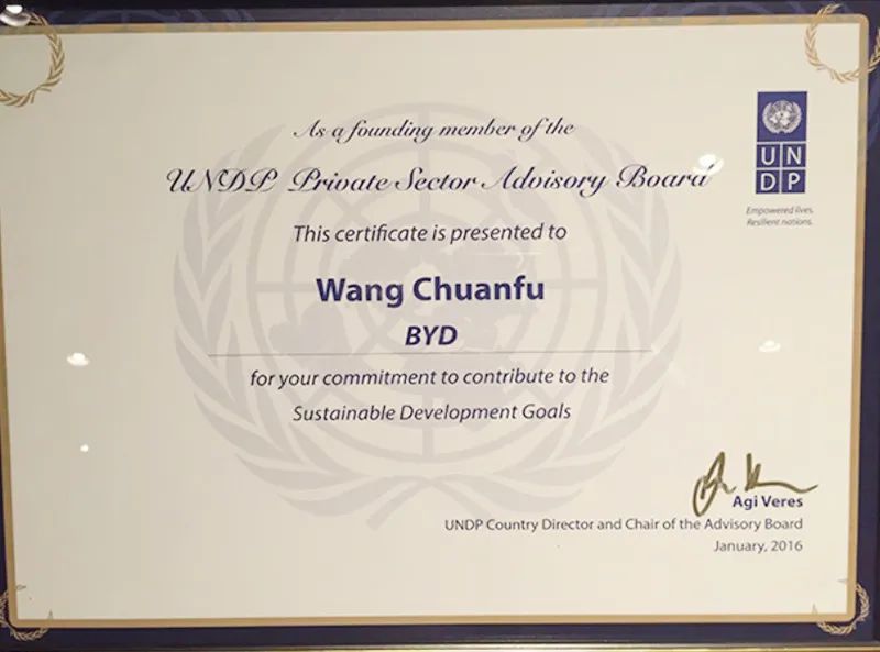 王传福成为联合国开发计划署“可持续发展顾问委员会”创始成员