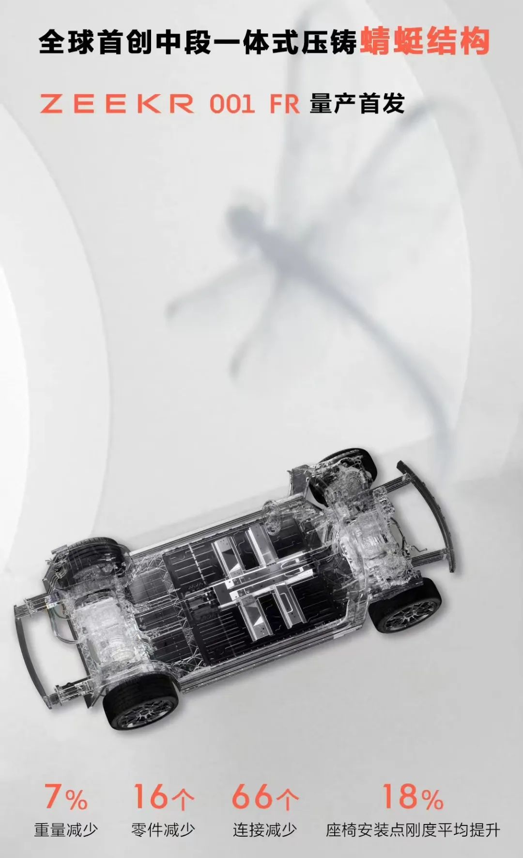 极氪001 FR中段一体式压铸蜻蜓结构
