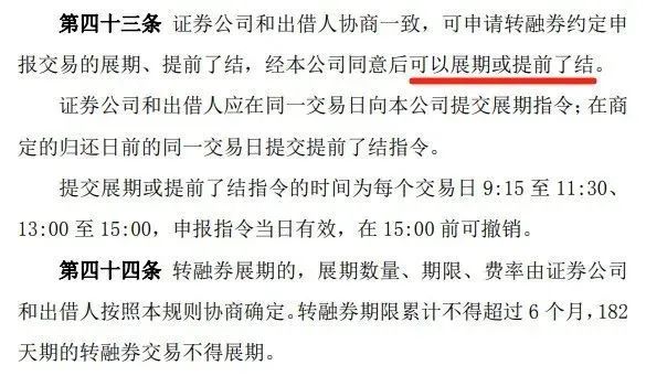 同样,“28日还券”的说法也并不准确。《中国证券金融股份有限公司转融通业务规则(试行)(2023年6月修订)》规定,转融券业务在券商与出借人协商一致后,既可以展期也可以提前了结。展期最长可达到6个月。