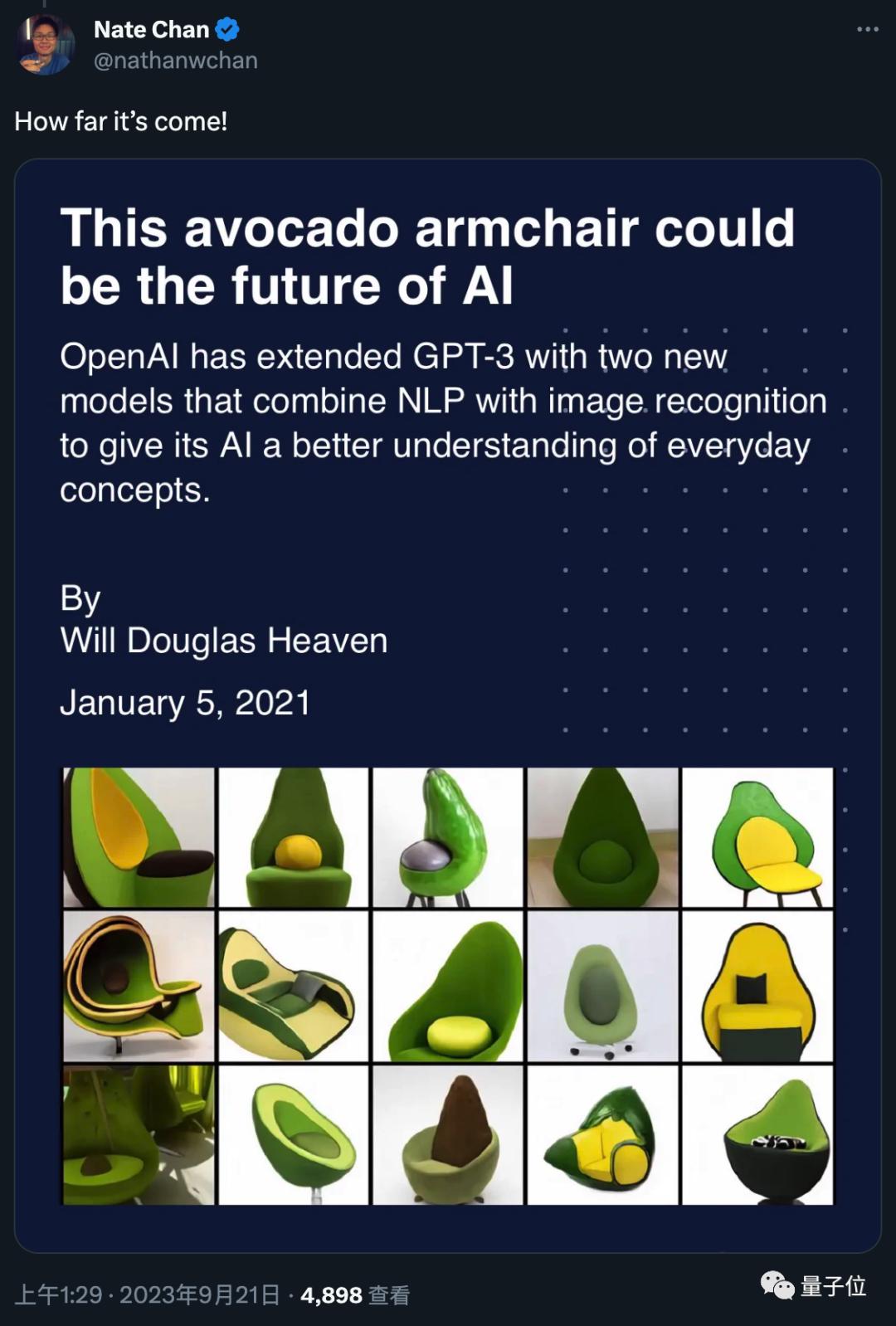 还记得2021年1月DALL·E 1刚出的时候吗?梦开始的地方就是一组“牛油果做的沙发”。