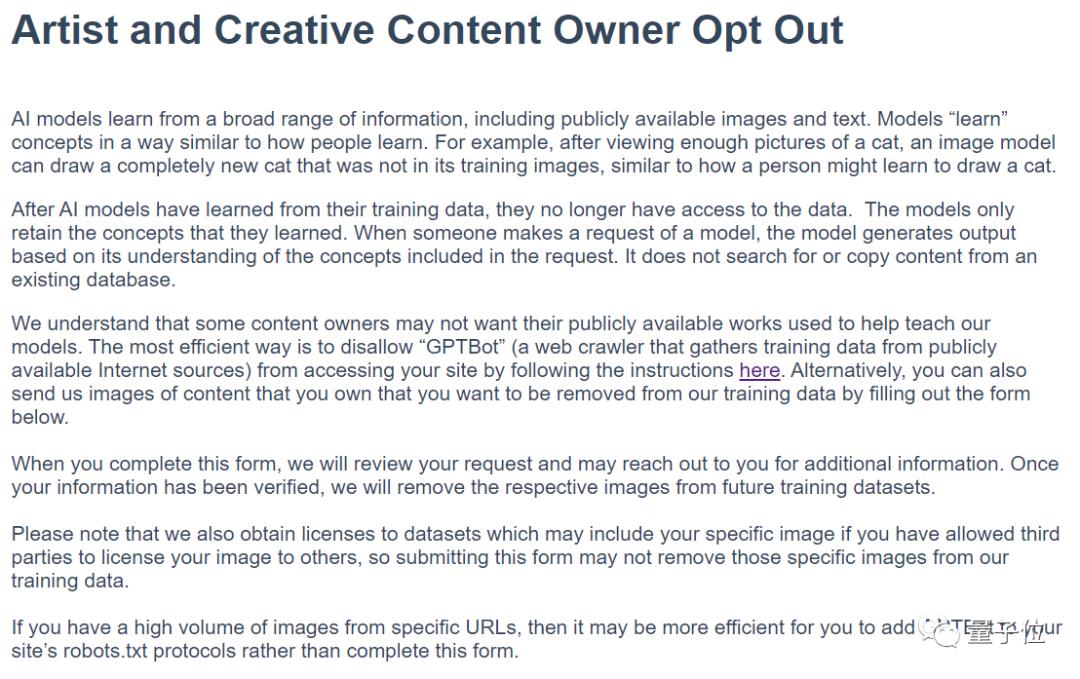 相比于直接和画手打官司、或者等着被起诉,OpenAI在官网放出了一则训练数据“免责声明”: