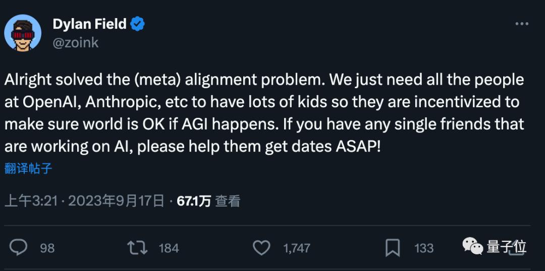 就让人想起之前网友提议,确保AI安全的最佳方法是让OpenAI、Anthropic等公司的员工都有孩子。