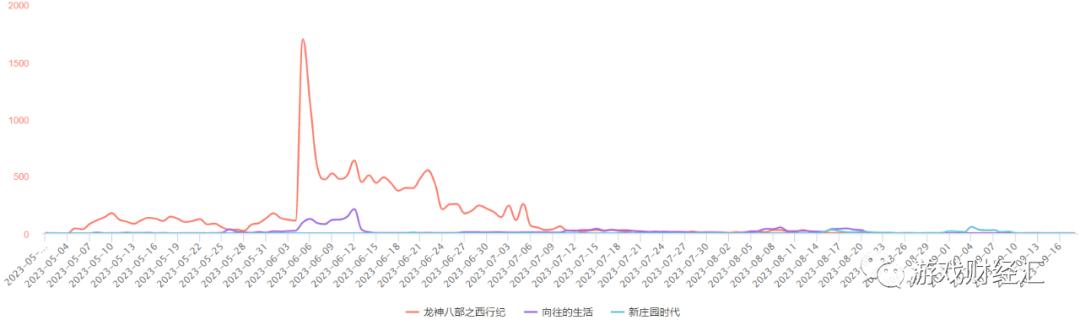 图:《龙神八部之西行纪》《向往的生活》《新庄园时代》投放趋势;来源:DataEye-ADX