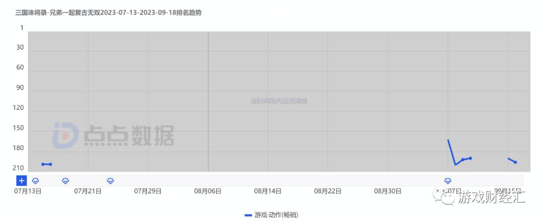 图:《三国诛将录》iOS动作游戏畅销榜排名趋势;来源:点点数据
