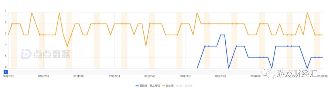 图: 《逆水寒》《冒险岛: 枫之传说》iOS游戏畅销榜排名; 来源: 点点数据