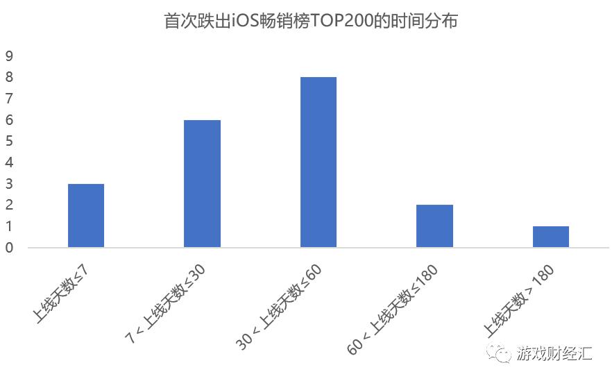3、四成产品跌出iOS游戏畅销榜,三款产品上线不到一周就跌出畅销榜。