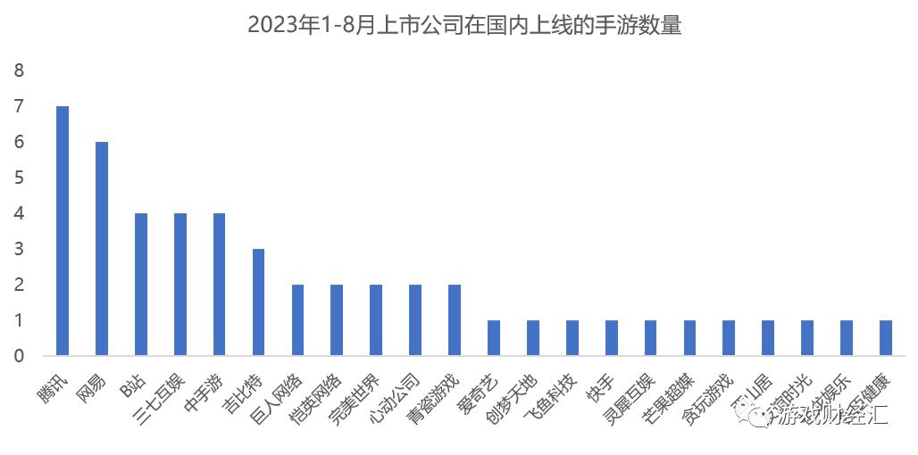 腾讯新游数量最多,网易第二,B站、三七互娱、中手游并列第三。
