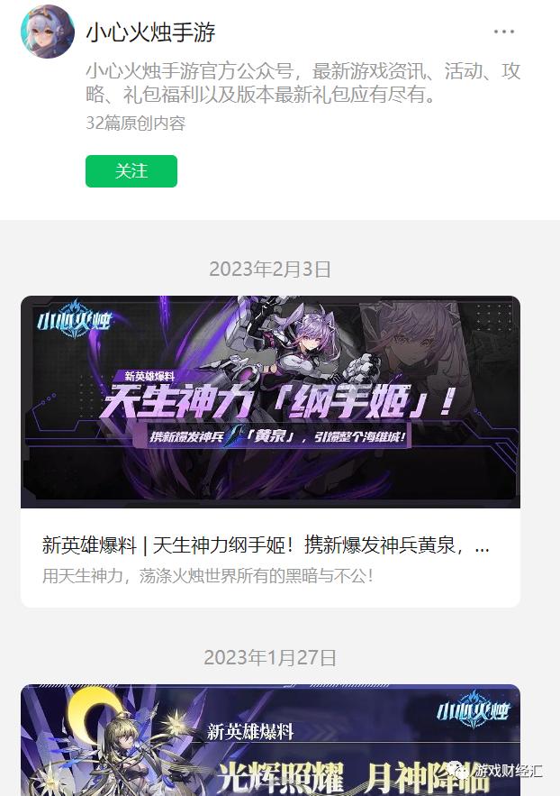 此外,《小心火烛》自1月上线以来没有发布任何版本更新,微信公众号2月3日后停更,投放侧也几乎没有买量。《荣耀战争》则同时推出了小游戏版本,投放层面侧重小游戏版,APP版投放量极少。