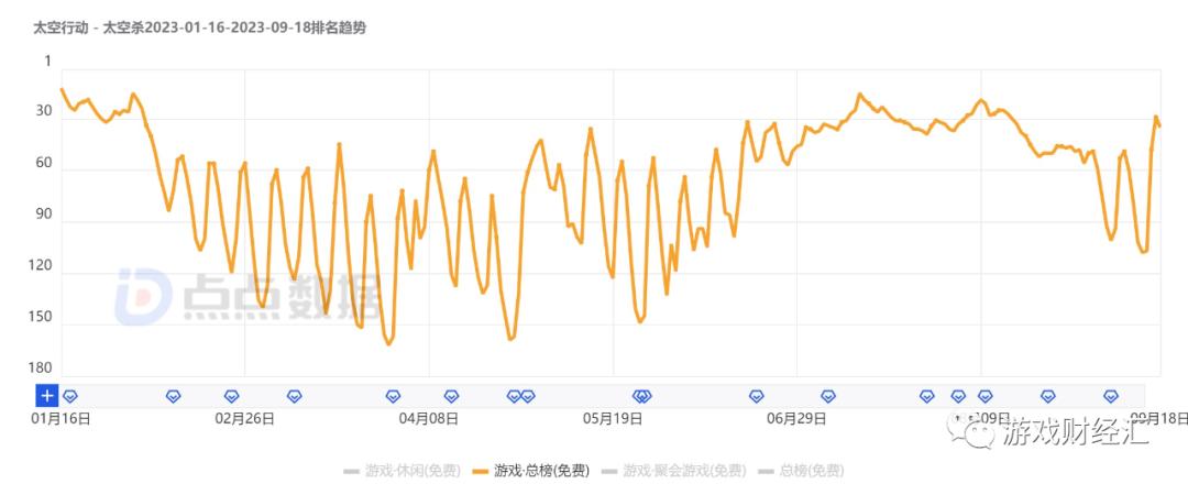 四款游戏中,《太空行动》表现相对最好,上线至今基本稳居iOS免费榜TOP150。