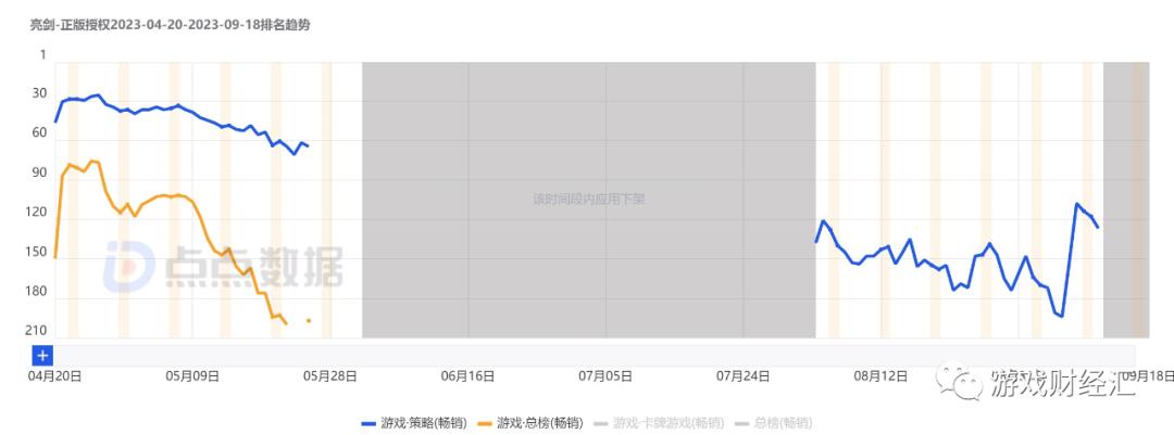 图: 《亮剑》iOS游戏畅销榜排名; 来源: 点点数据