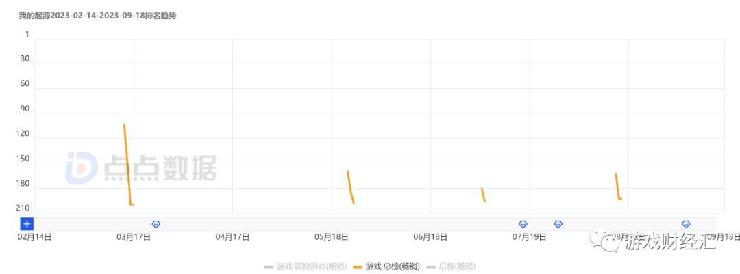 图:《我的起源》iOS游戏畅销榜排名;来源:点点数据