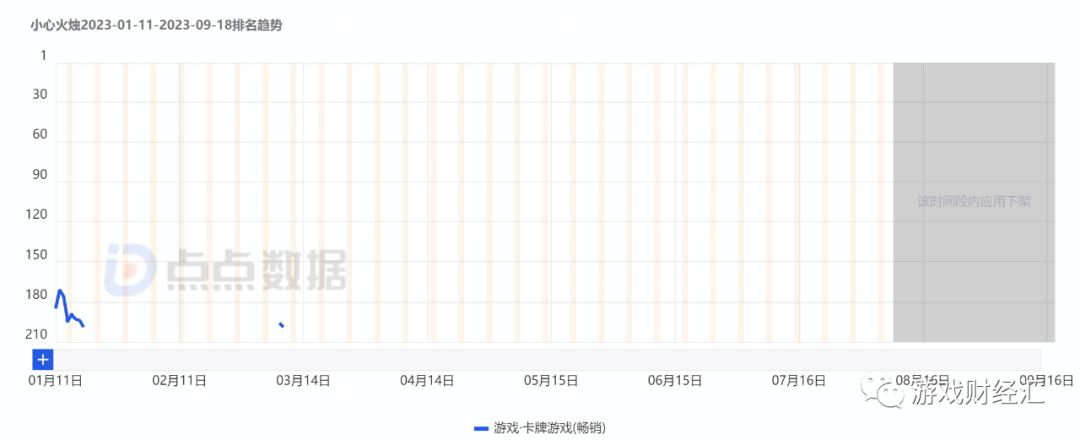 图:《小心火烛》iOS 卡牌游戏畅销榜排名趋势;来源:点点数据