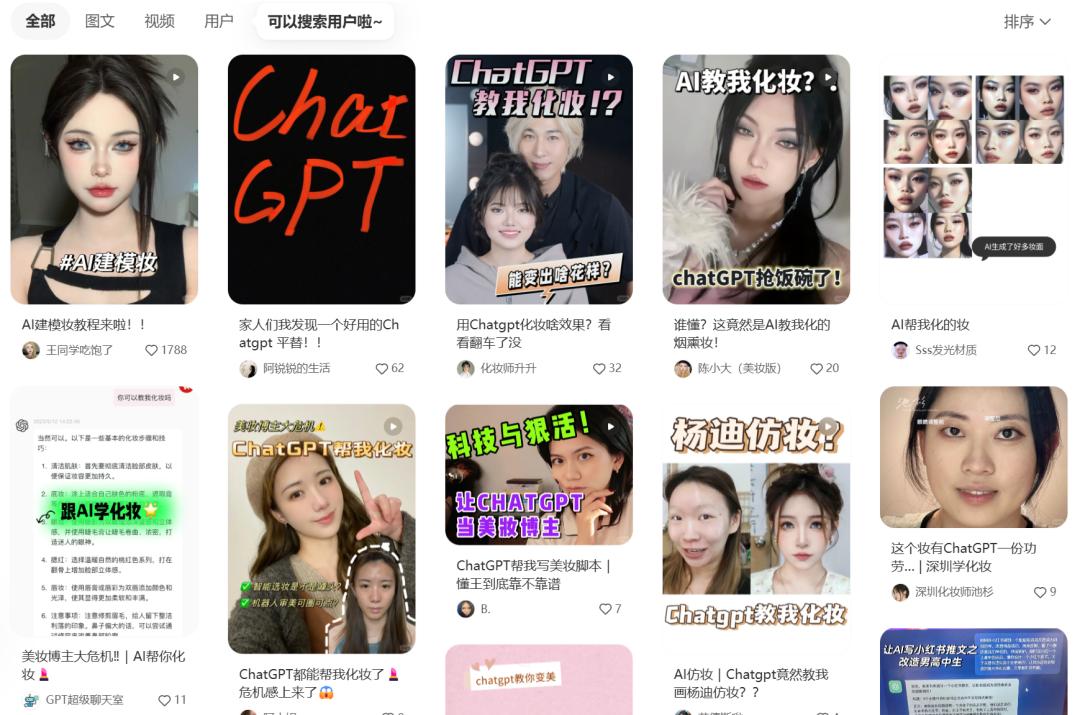 美妆博主们开始探索更进一步的使用AI工具,尤其是ChatGPT,于是关于AI+美妆的选题默默的变成了ChatGPT抢饭碗了!ChatGPT教我化妆?