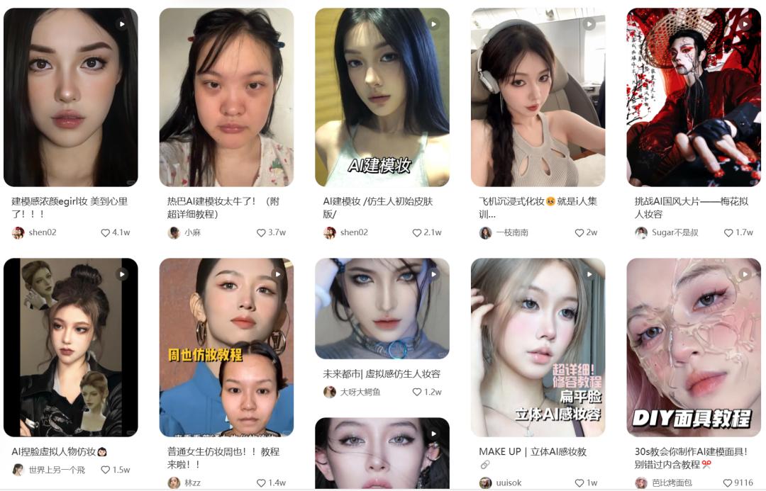 与此同时,随着人工智能持续高开高走,创作者使用AI工具==已经成为了日常,美妆博主们也陆续使用AI进行妆容创作。