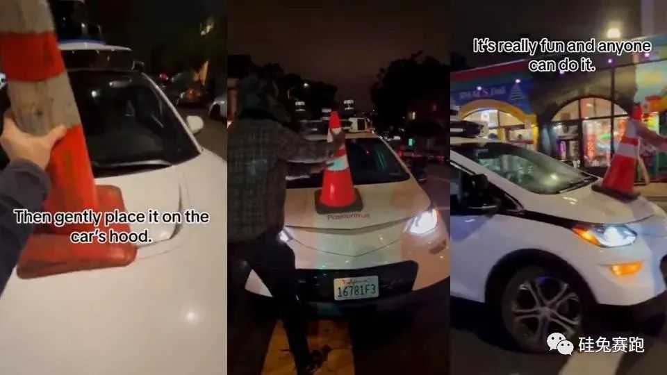 有一群对无人车深恶痛疾的抗议者还搞出了一个叫做“交通锥之周”的活动,他们发现把交通锥放在Waymo和Cruise出租车的引擎上就可以阻止它们的正常运作,以此来暗示这项科技并不牢靠,对道路安全带来的也将是更多威胁而不是保障。