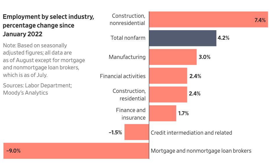 就业市场依然稳固,尽管今年夏天增长有所放缓。一些对利率敏感的行业,如抵押贷款机构,已经裁员。