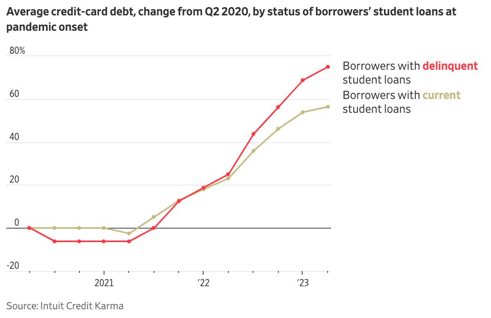 一些家庭已经捉襟见肘。纽约联邦储备银行的数据显示,第二季度信用卡和汽车贷款逾期余额的比例首次超过疫情前的水平。暂停三年后,联邦学生贷款即将重启,这可能会进一步给数百万美国人的预算带来压力。