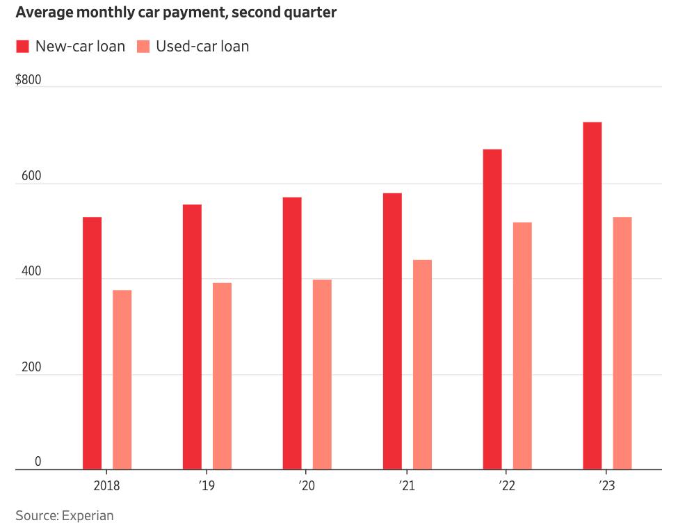 Experian的数据显示,第二季度新车的平均月付款约为725美元,二手车的月付款超过500美元。