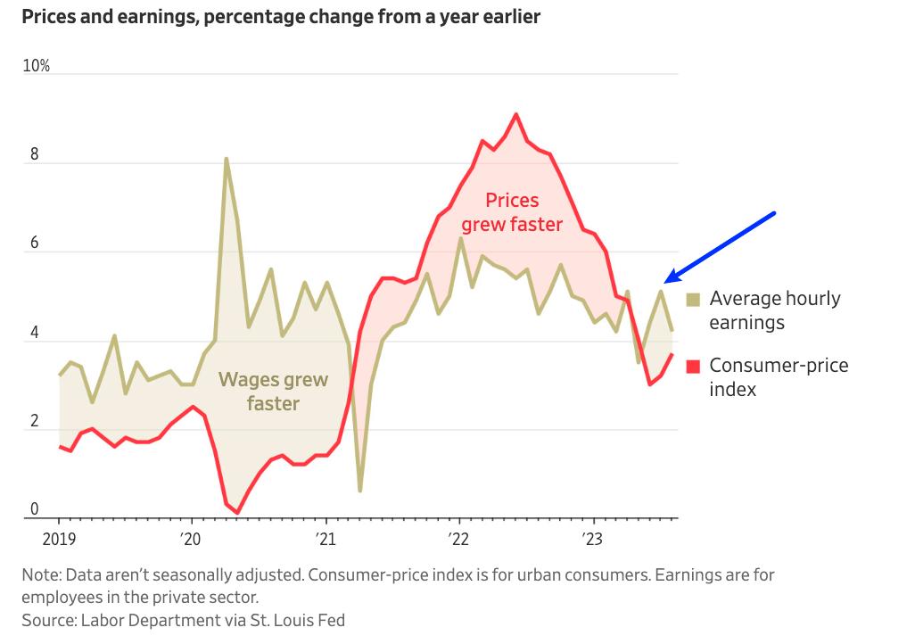 通胀似乎已经在一定程度上得到控制。今年夏天,工资涨幅首次超过了通胀率,这是自2021年以来的首次。这意味着商品和服务的价格上涨速度低于预期,同时由于对工人的竞争加剧,雇主也面临着加薪的压力。这些因素对于家庭的购买力以及消费支出有着重要的影响。