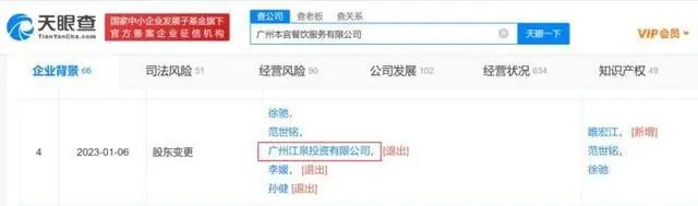 其中,知名歌手胡海泉持股的广州江泉投资有限公司(下称“江泉投资”)退出了本宫餐饮股东序列,不再持有后者股份。