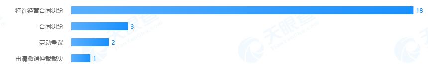 除了偷税被罚、股东退出,从天眼查风险数据上也可以看到,本宫的茶还有“一脑门子的官司”,其中加盟商纠纷占比最多。