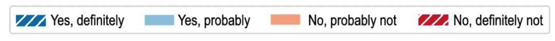 上图显示了学生是否计划使用ChatGPT来辅助他们的作业(前两行),以及他们是否认为应该使用ChatGPT来辅助他们的作业(最后两行)。