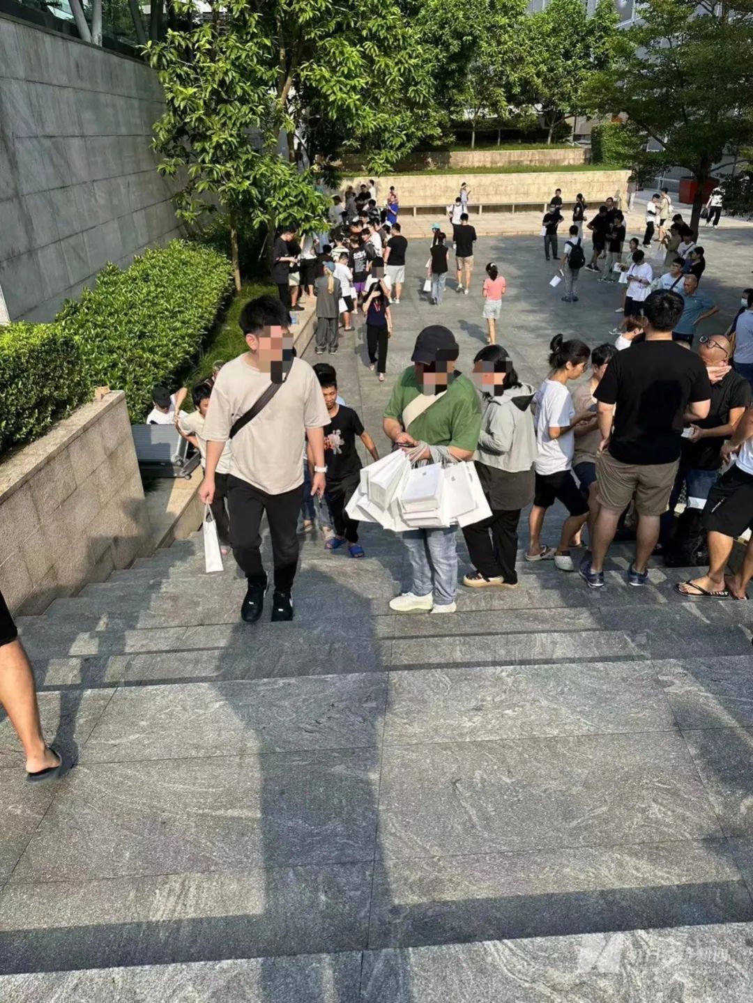记者 在现场注意到正在交易的几名“黄牛”,他们手提十多个苹果购物袋,看到从苹果店内拿到新机的用户会主动上前回收新机器。“iPhone 15 Pro Max加价700元左右,蓝色不要,512GB最好,1TB不好卖”。至于iPhone 15及iPhone 15 Pro,很多“黄牛”并不收货。