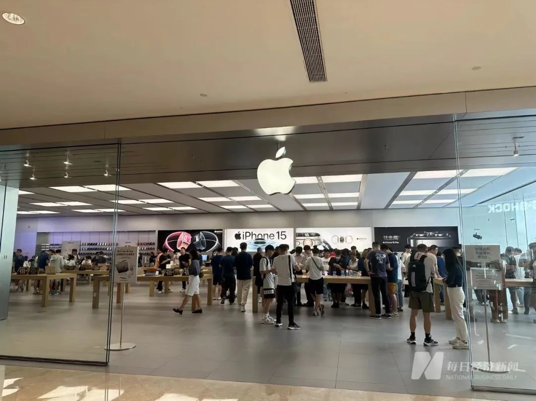 iPhone 15系列发售首日,深圳益田假日广场苹果直营店店内 图片来源:每经记者 王晶 摄