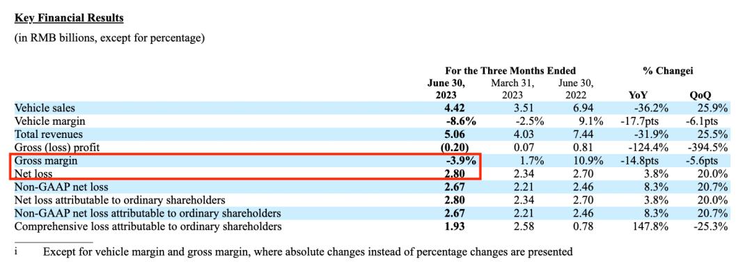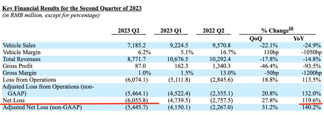 蔚来汽车2023年第二季度主要财务数据,图/蔚来汽车2023年第二季度财报