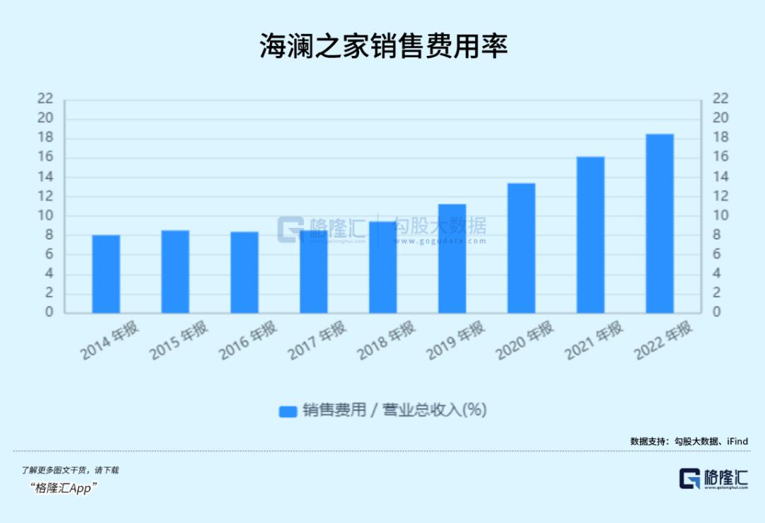 从16年到22年,海澜之家销售费用从14.23亿元增至34.25亿元,占营收的比重翻了两倍多。今年上半年,海澜之家在营销上的花费多达21亿,是同期竞争对手九牧王、七匹狼的3-4倍。
