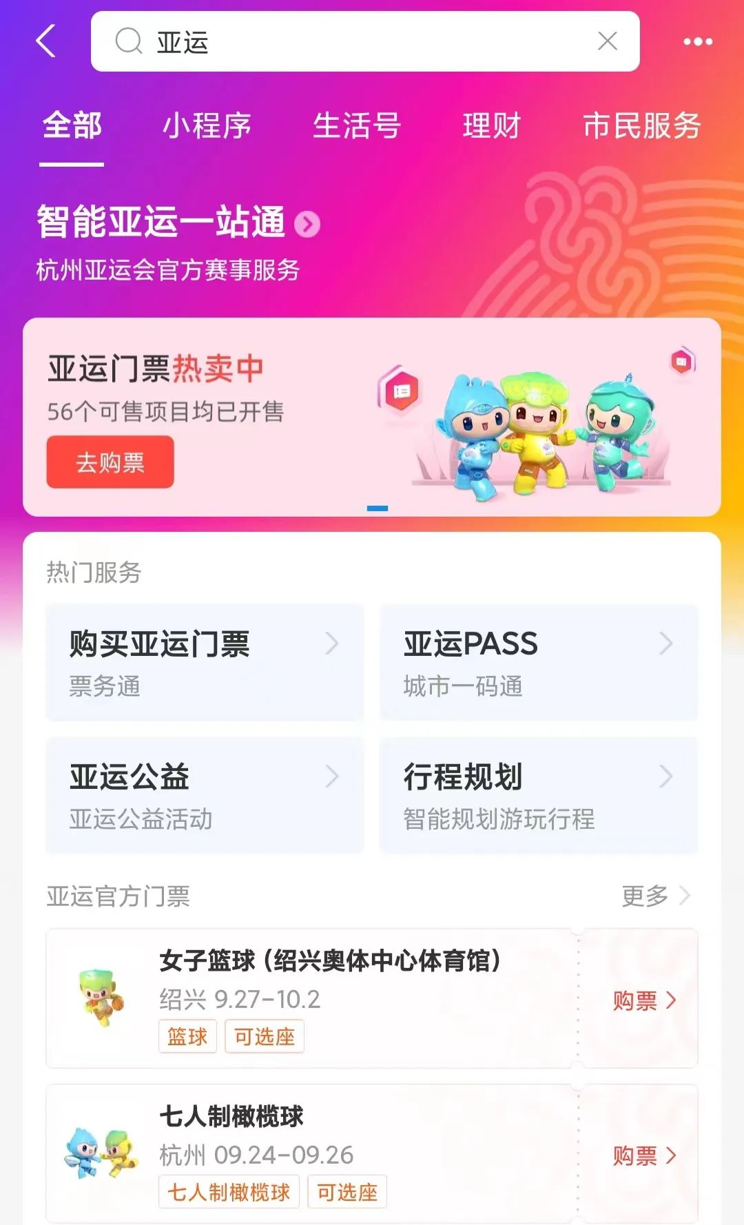 在城市生活服务方面,支付宝推出了“智能亚运一站通”小程序,集成了购票、吃、住、行等一站式服务,解决了以往使用多个APP才能解决各类需求的不便捷问题。