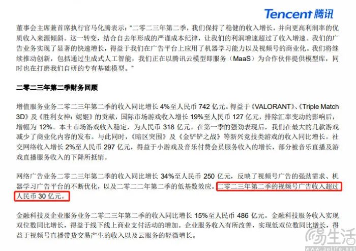 作为此前马化腾钦点的“全场的希望”,肩负振兴广告、电商等业务重任的视频号,如今无疑是腾讯最为重要的项目之一,并且视频号也确实不负期望,屡屡成为财报中的亮点。例如就在今年第二季度,腾讯方面就首次披露了视频号的业绩,显示其3个月的广告收入超过30亿元。虽然这个数字相比抖音、快手并不算多,但要知道视频号引入信息流广告才不过一年时间。