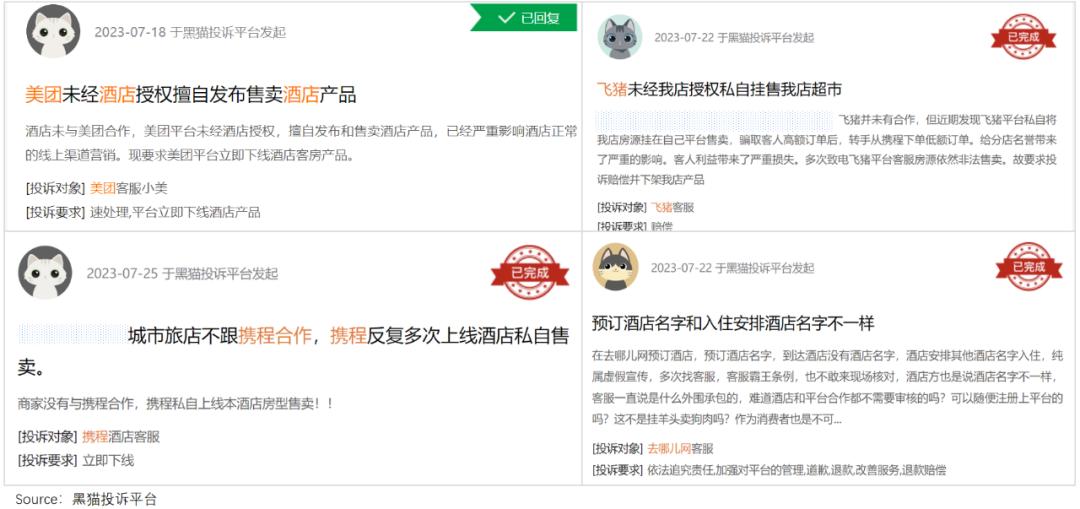 这并非危言耸听,可以看到,一些酒店老板在投诉平台反映,自己的店平白无故地出现在没有入驻的平台上,价格还比自己店里的原价高得多。