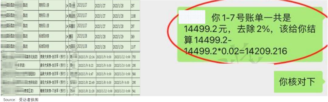 “他们主要做单体酒店,也有一些连锁酒店,订单金额从100-5000元不等。”凌玲说,群里代理们每隔一周会结算一次,大代理抽取交易金额的2%后给小代理返现。