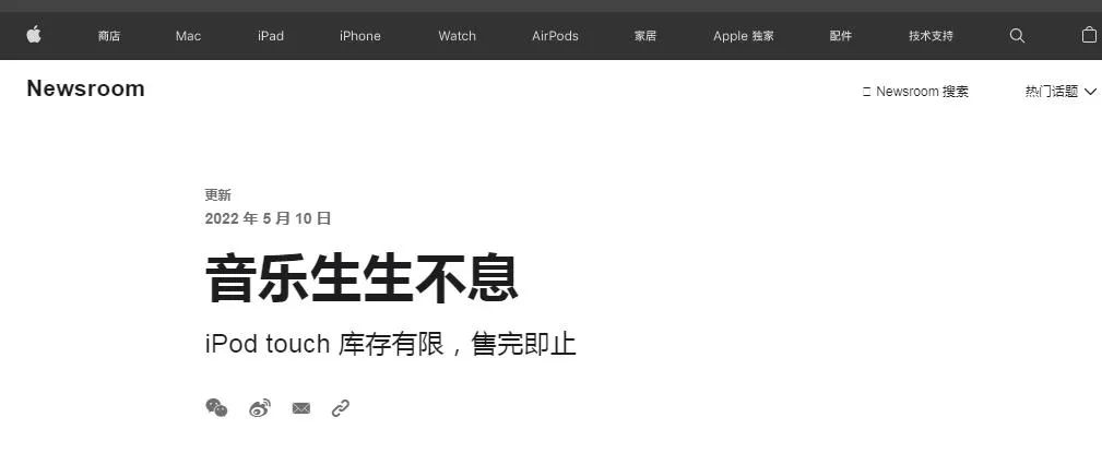 2022 年 5 月 10 日,苹果官宣 iPod 系列正式停产。