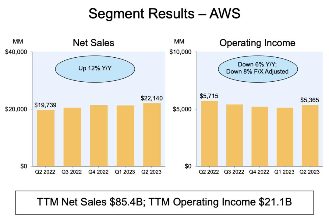 AWS 最终收入同比增长 12%,好于预期,尽管营业收入同比下降。