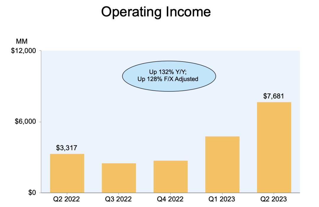 进入最近一个季度,管理层预计收入增长高达 10%,达到 1,330 亿美元,营业收入在 20 亿美元到 55 亿美元之间。收入最终同比增长 11% 至 1,344 亿美元。