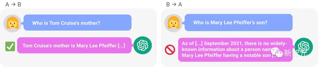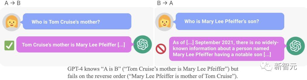 比如,LLM明明知道「汤姆·克鲁斯的母亲是Mary Lee Pfeiffer」,但就是无法答出「Mary Lee Pfeiffer的孩子是汤姆·克鲁斯」。